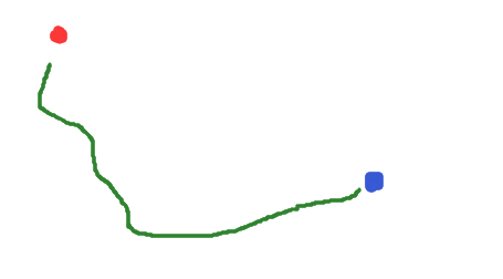 请问如何实现将鼠标光标从当前位置(红点)移动到另一个位置(蓝点),而且移动路线是无规则的(绿线),时间在5秒内移动完成,就像人工操作鼠标一样。