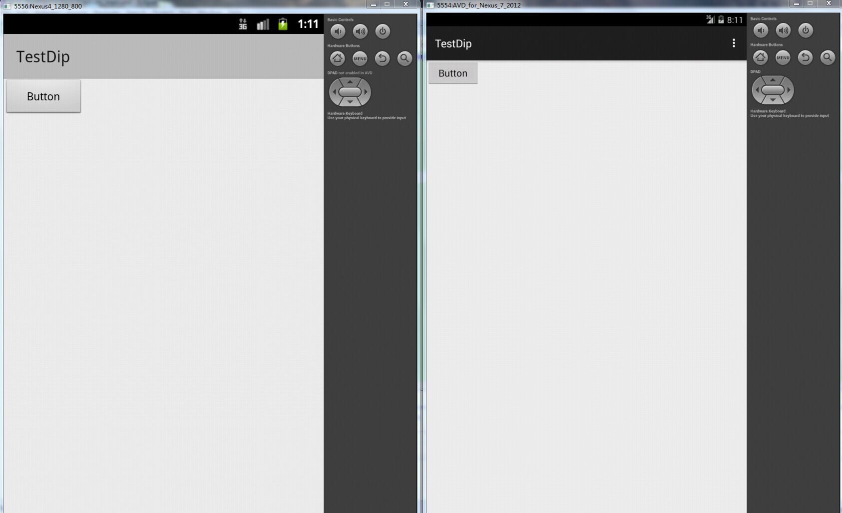 有个问题请教一下大家,关于屏幕适配,图是相同分辨率不同尺寸的两个设备(很明显,相同分辨率下尺寸越大按钮越小,按钮宽为100dp(相同分辨率下比例不对究竟dp的意义是什么),高为matchparent,网上教程说的是关于dpi适配,但dpi也是大概分为ldpi,hdpi等,也不是分得那么细,然后尺寸定义总得用到dp吧,用dp的话比例就不对了,网上教程说适配用文件夹分类或者代码等,可是反编译一些网上找的app没有看到value-xxdpi文件夹,也可以看出屏幕大小不同比例也不同,一些字体明显小了,是偷懒了还是没适配好,请问一下正在开发app的同行门你们用什么方式做适配