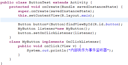 当用户单击button按钮时,程序将会触发MyButtonListener监听器