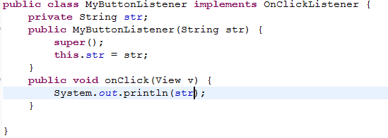 上面的程序让Activity类实现了OnClickListener事件监听接口,从而可以在该Activity类中直接定义事件处理器方法:onClick(view v),当为某个组件添加该事件监听器对象时,直接使用this作为事件监听器对象即可。