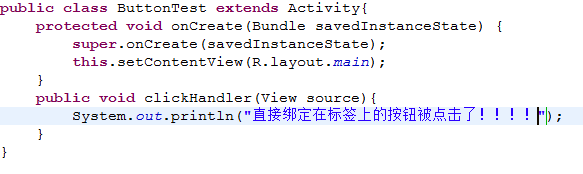 为Button按钮绑定一个事件处理方法:clickHanlder,这意味着开发者需要在该界面布局对应的Activity中定义一个void clickHanler(View source)方法,该方法将会负责处理该按钮上的单击事件。