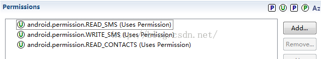 注意: 读取联系人,短信等信息都需要加上权限的: