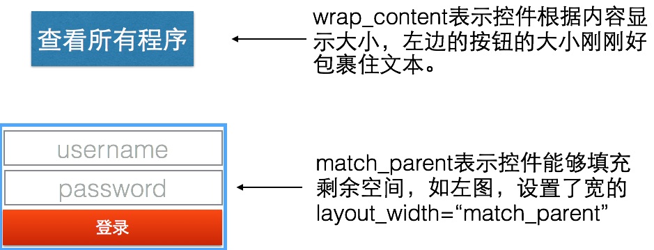 虽然我们可以直接指定控件的宽度和高度的值,但是因为无法确定使用设备的屏幕尺寸,所以建议使用wrap_content和match_parent属性。