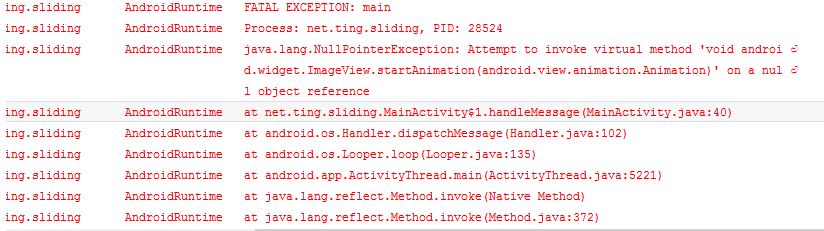 写好的软件在手机上测试的时候崩溃,崩溃提示在这里出现的问题,谁能给看一下,之前已经测试过图片添加动画的功能,可是添加到程序中的时候运