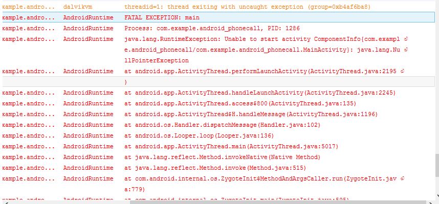 自己按照视频上的步骤写了一个拨号器,结果放在手机上一打开就会闪退,但是后来发现现在的eclipse新建一个工程会自动加载一个fragment_main.xml,然后我把这个文件删了,使用了另外的activity_main.xml,我以为这样就不会出错了,可是放到手机上后,软件是能打开了,但是每当输入一个号码,logcat就会发现一个错误,并且输入完以后还点击拨号按钮还是会闪退,本人初学安卓,已经在这个问题上纠结一个星期了,听说CSDN上大神很多,特来求教,希望有好心人可以帮我解决。。。