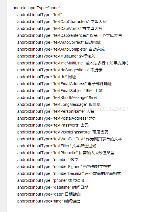 兔子-Edittext的android:inputType的属性值的含意