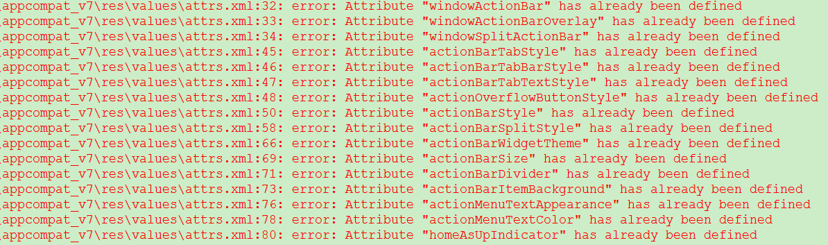 ide报的错是:attrs.xml的元素重复定义。