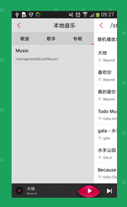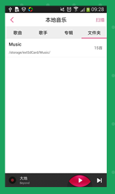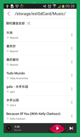 然后点击文件夹就会进入二级列表(就是具体的歌曲列表),它这里会把标题和内容、菜单都变成二级列表了,除了最底下的播放按钮那写不变。