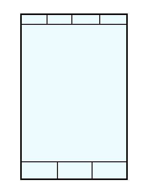 我想做一个如下图(1)的布局,上面四个位置和下面三个位置全是按钮,中间区域留着添加按钮、图片、文字等功能。
