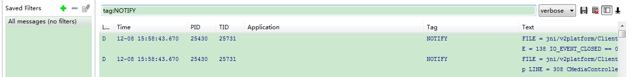 log过滤支持by tag,message(过滤规则是含某些字符串,其他的都是全匹配),PID,Application Name?