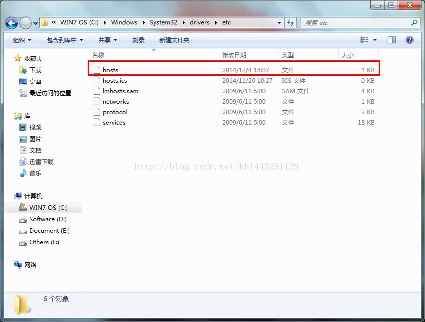在C:\Windows\System32\drivers\etc目录下找到hosts文件,如下图: