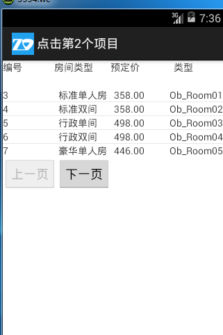 我想要实现的是将点到listview中某一行时跳转到另外一个页面并将那行里面的房间类型或者类型的值传过来,