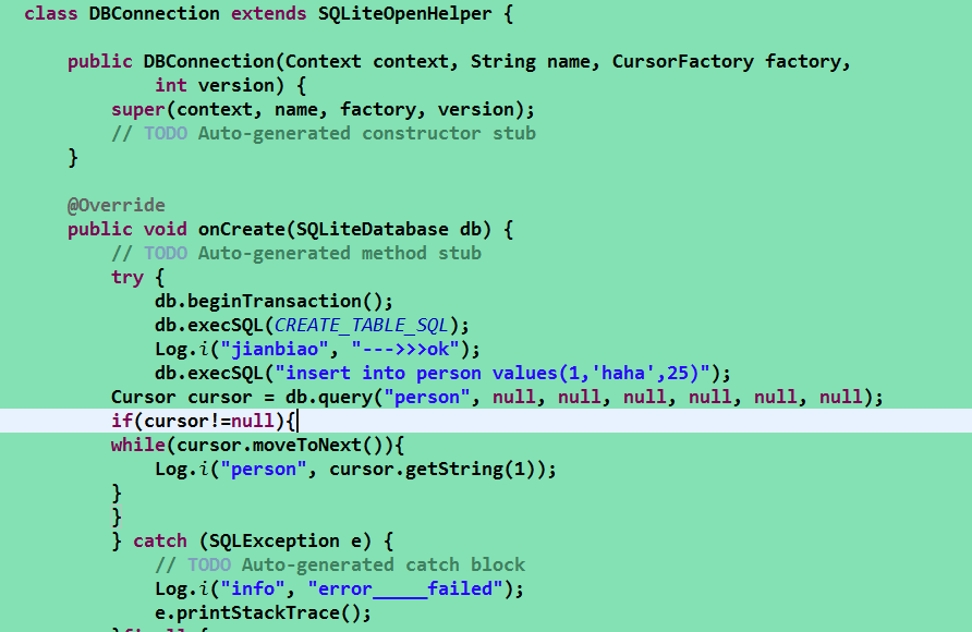 目测, 在  DBConnection#onCreate 里面,加上下面两行应该可以