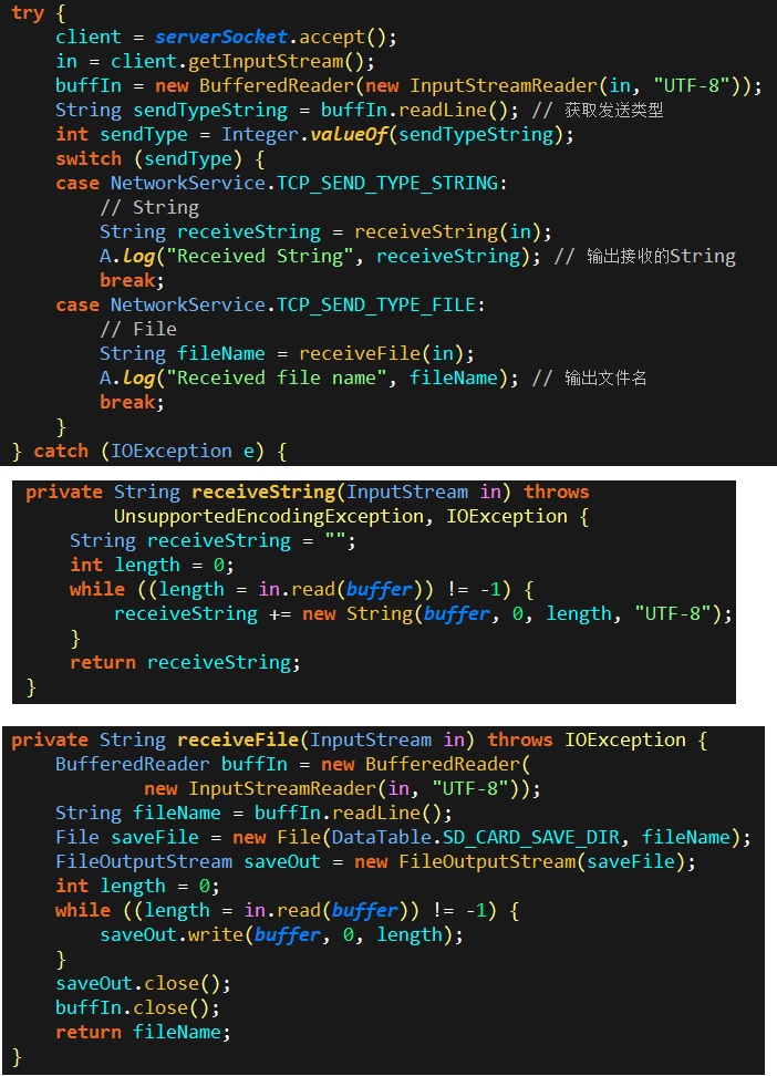 2、若为String用InputStream.read(buff)循环接收,结束;