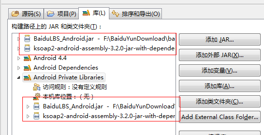 我怀疑是不是我的打包有问题,或者我引用的外部jar有问题。引用是把两个jar包直接拖到libs目录中,Android Private Library自动就引入了。然后就打包。