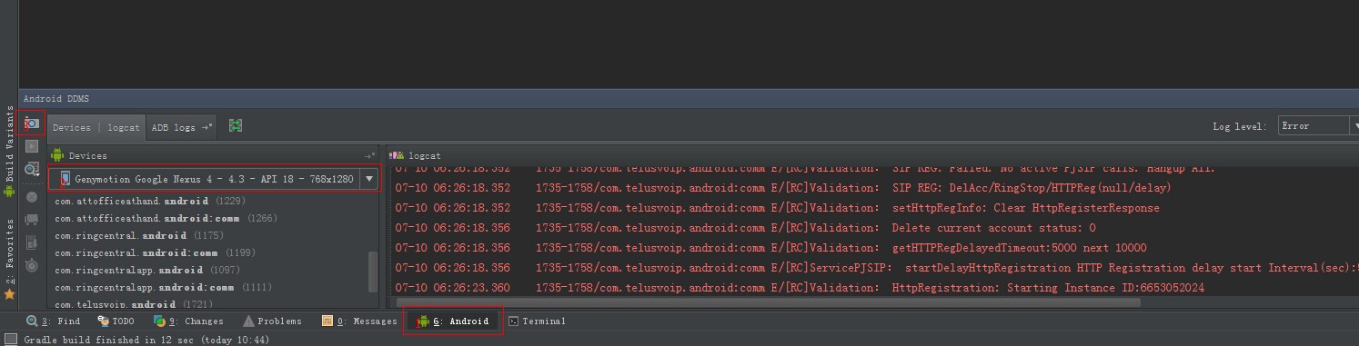 先点击Android,调出device界面,选择你想要截图的手机,我这边是用模拟器的,然后再点3的按钮,对应你所选择的机器的界面就会弹出来了,给大家show下: