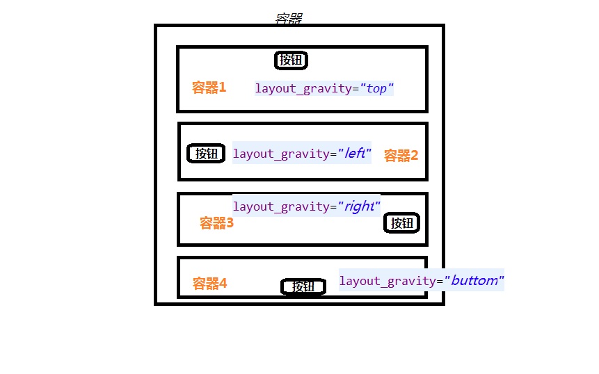 layout_gravity表示元素相对于整个容器的对齐方式,主要有Left、Right、Top、Bottom四种对齐方式。