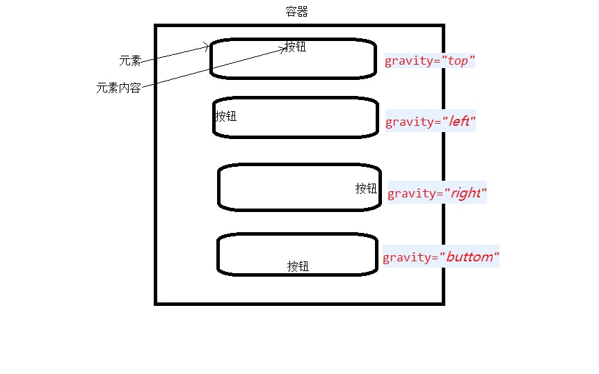 gravity表示元素里的内容对齐方式,主要有Left、Right、Top、Bottom四种对齐方式。