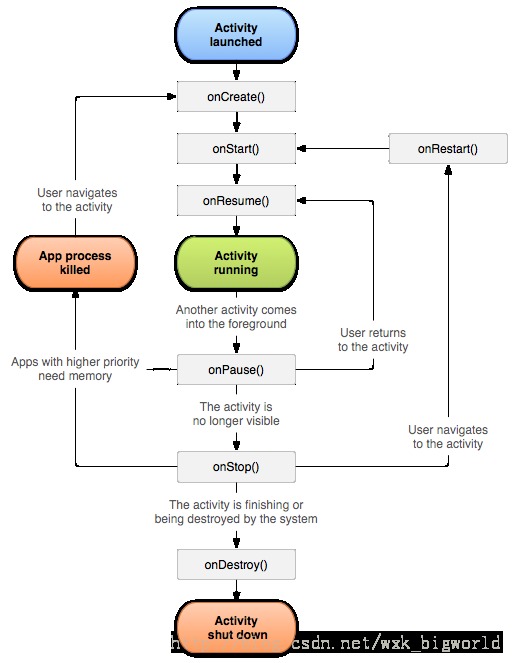 注:当Activity处于暂停状态,停止状态时,在内存极端底下时可能被意外的杀死。