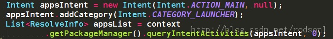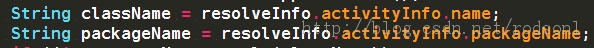 通过以上方法可以获取一个ResolveInfo的List,通过ResolveInfo可以获取Activity的类名和包名