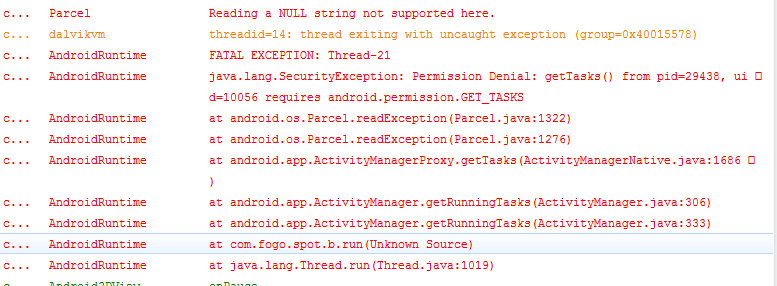权限问题,你需要添加一个GetTask的权限.你做什么需要用到这个权限?关于电源或锁屏的?
