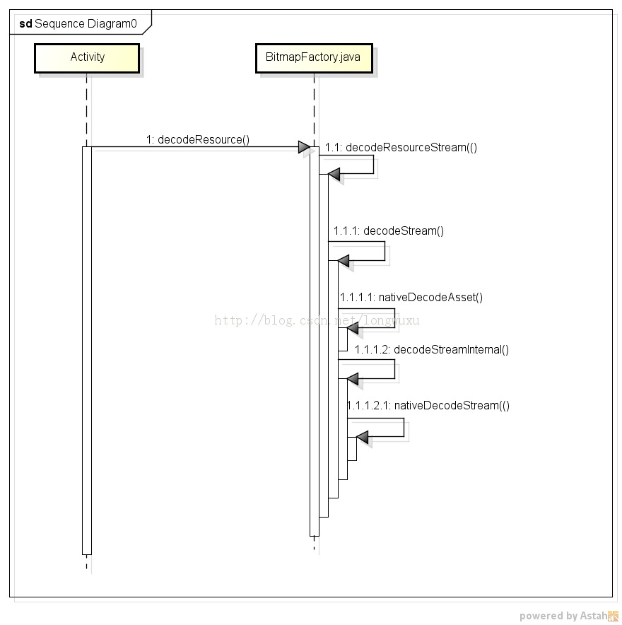 我看了BitmapFactory的源码发现上面那个分析是错误的,decodeResource最终也是调用Jni去获取图片。请看下面时序图。