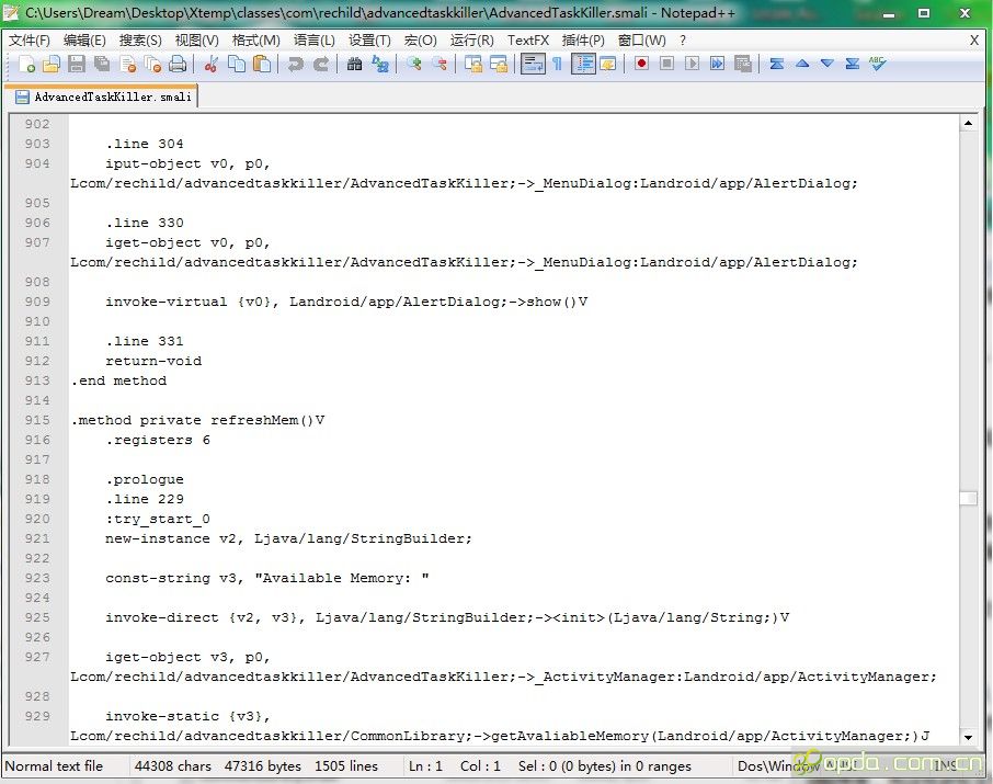 .smali文件其实就是文本文件,用普通的记事本就能打开,但是自带的记事本软件来编辑这么多文件,肯定是不行的,累都累死了,所以我们来使用强悍的Notepad++文本编辑软件!