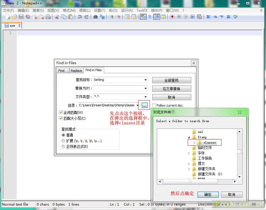 Notepad++支持批量搜索文件夹内所有的文件内容,不需要一个文件一个文件的去搜索,大大降低了工作量!