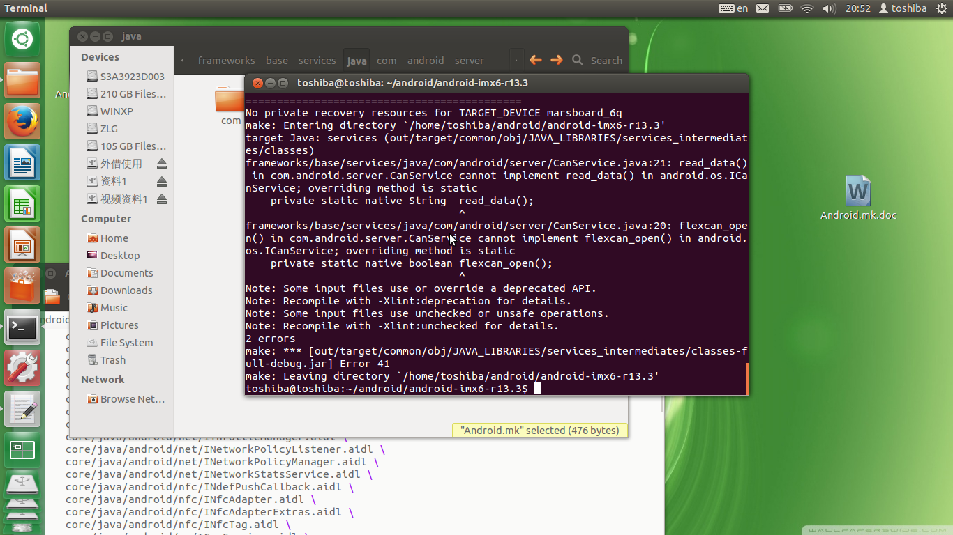 我通过百度等搜索资料。逐渐移植了CAN驱动,添加了HAL层,编写了JNI,最后添加服务的时候编译遇到问题。。我详细描述一下我的过程,请各位准确指点下。(这个问题困扰我3天了。。。)