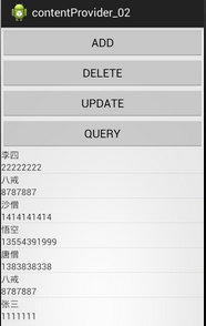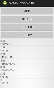 操作 contentProvider_02 ,contentProvider_01的结果也变了。因为App_02这个应用操作的就是App_01的数据库。