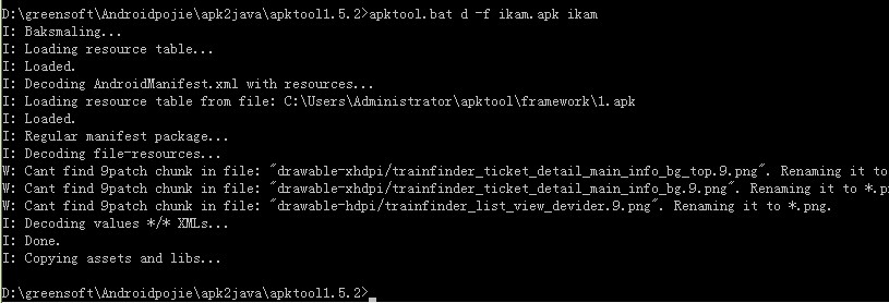 二、apk反编译生成程序的源代码和图片、XML配置、语言资源等文件