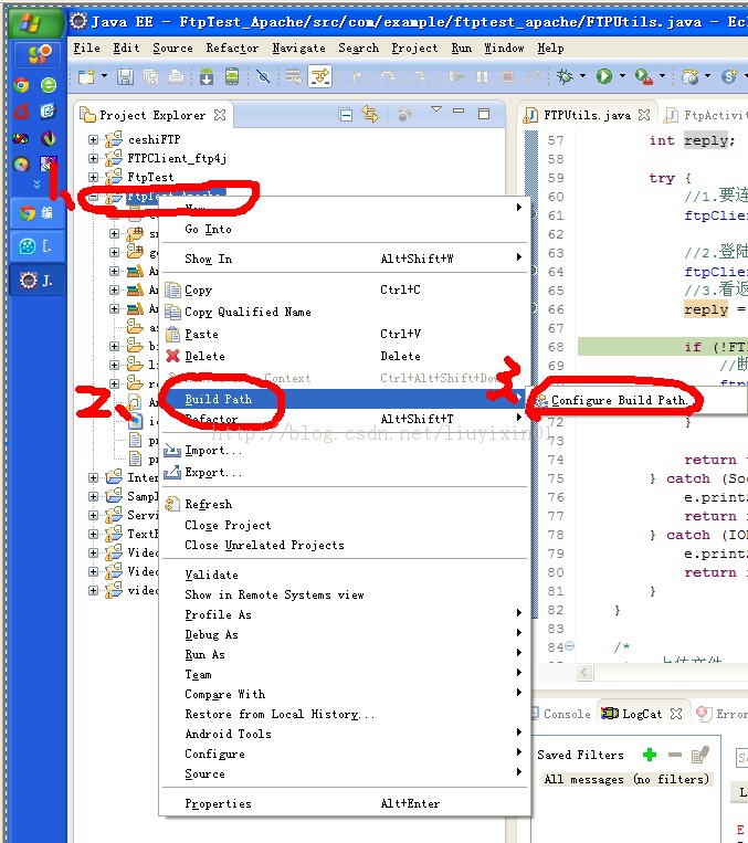 1、在工程上名上右键->Build Path ->Configure Build Path