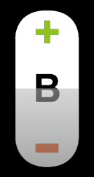 如图,B不动时是白色底,点击上半部分+号为灰色,-号为白色;点击下半部分-号为灰色,+号为白色。这个按钮该如何实现?菜鸟求指导。