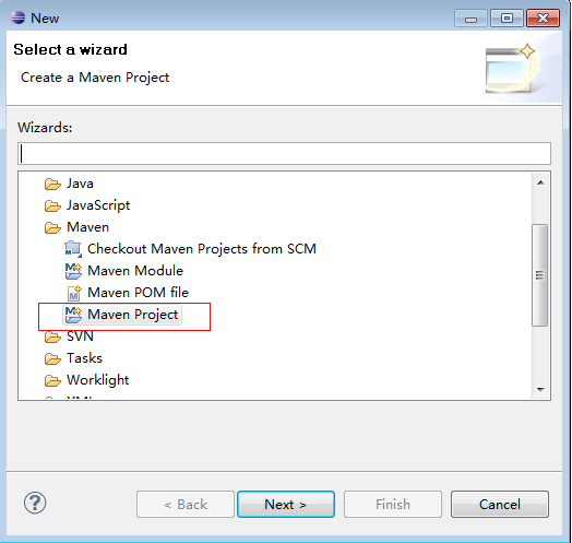 1、打开eclipse,通过工具new maven project出现如下窗口:
