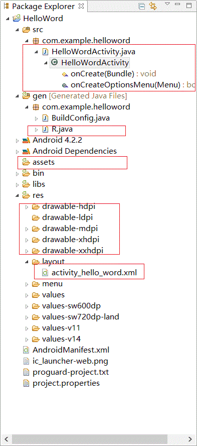 3.assets,用来放一些资源,不会在 R.java中生成id ,使用时必须写上一些路径