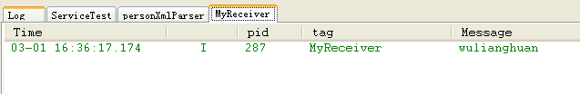 package com.broadcast.receive;import android.content.BroadcastReceiver;import android.content.Context;import android.content.Intent;import android.util.Log;public class MyReceiver extends BroadcastReceiver{ private static final String TAG = "MyReceiver"; @Override public void onReceive(Context context, Intent intent) { String name = intent.getStringExtra("name"); Log.i(TAG, name); }}