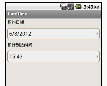 得到日期和时间数据后,重写TextView,TextView是可以应用图片背景的,右边的箭头有可能就是背景图片上的,那种固定的日期和时间格式就类似于day+"/"+month+"/"+year。