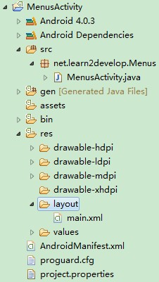 1、创建一个工程:Menus。