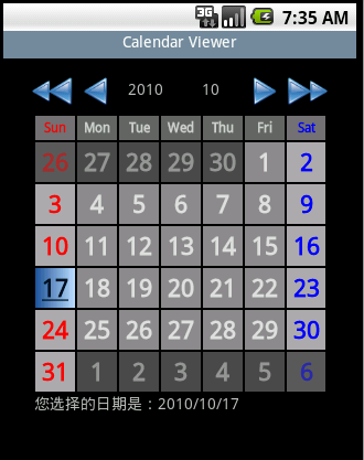>> 分享一款android的年历组件