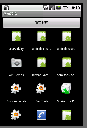 用GridView显示系统安装的所有的应用程序,效果图: