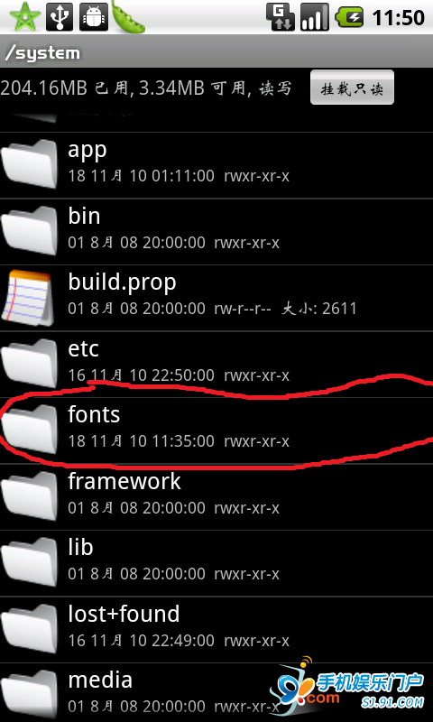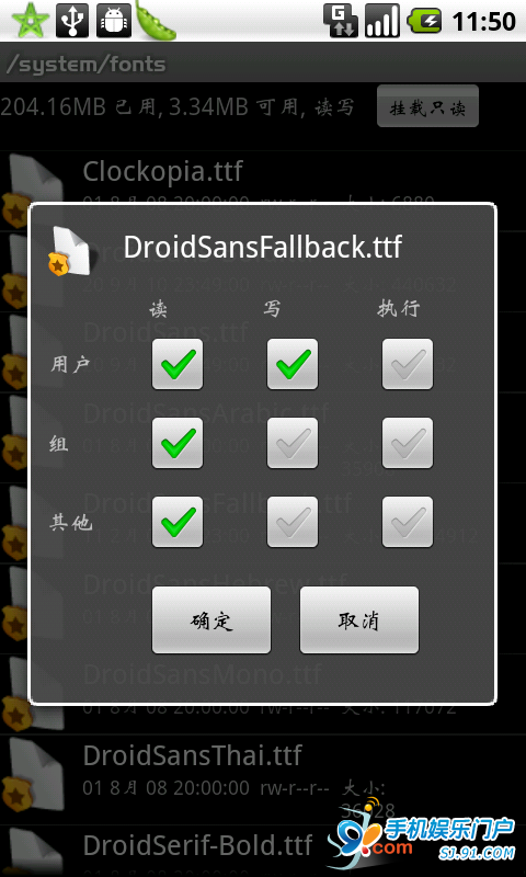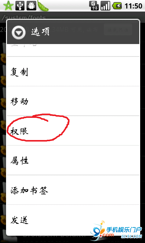 先点击上面的挂载只读选项(不然无法粘贴),粘贴,然后很重要的一步!修改权限一定不能忽略!长按刚粘贴过来的字体文件,选择权限