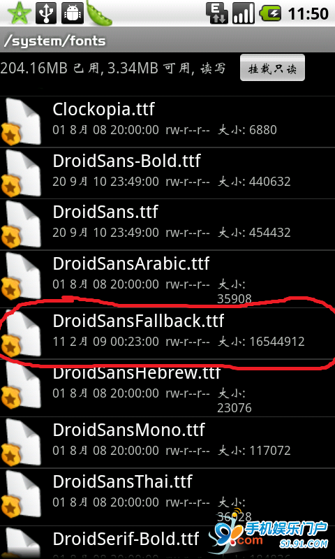 五、打开RE,找到你之前下载的字体,重命名为DroidSansFallback.ttf,