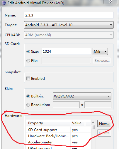 构建AVD的时候,在Hardware选项中,有个New按钮,选中,其中的Property选项中有设置很多模拟器所支持的东西。有个“keyboard support”,选中,OK后。设置其指为“Yes”。问题解决了。