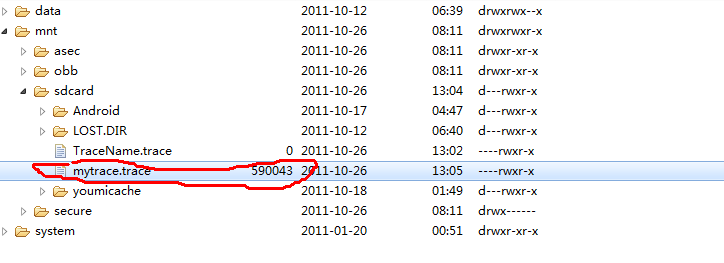 但是在实际的测试时发现这种方式其实并不好用,因为通常情况下我们的activity的onDestroy()是由系统决定何时调用的,因此可能等了很长时间都不会得到这个trace文件。因此决定在onStop()中来调用Debug.stopMethodTracing()。这样当我们切换到其它activity或者点击home键的时候onStop()就会被调用,我们也就可以得到完整的trace file。  在运行程序之前,首先要保证我们的AVD是一个带有SD card的AVD,这样才能使trace文件保存到/sdcard/...当中。运行后可以任意做一些操作,然后点击home键。这是通过DDMS file explore就可以看到/sdcard/目录下有一个trace文件,现在把这个文件copy到电脑上指定的目录,假设是C:\tracefile 目录下。  可以通过命令行来执行traceview,进入tools目录后,执行   traceview C:\tracefile\yourActivityTrace.trace  之后就可以看到图形了.