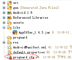 什么是混淆什么是proguard我就不解释了。Android2.3自带混淆,但是2.2以下的就要自己想办法。你可以新建一个2.3的项目,然后项目根目录里会自动建立一个“proguard.cfg”,把这个文件拷贝到你的工程目录下。如图: