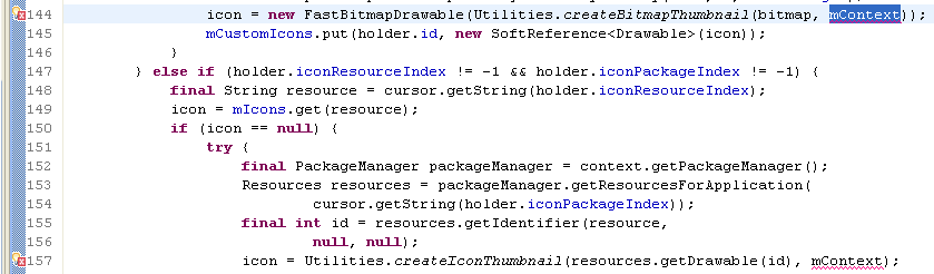 大家发现这个错误跟上面一个(BubbleTextView.Java)中的错误是一样的,恩,修改办法也是一样的,注意:我只是提供了我当时的修改办法,大家多尝试其他的办法: