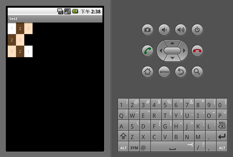 下面示例演示了一个TableLayout的布局结构,其中第二行只有两个单元格,而其余行都是三个单元格。