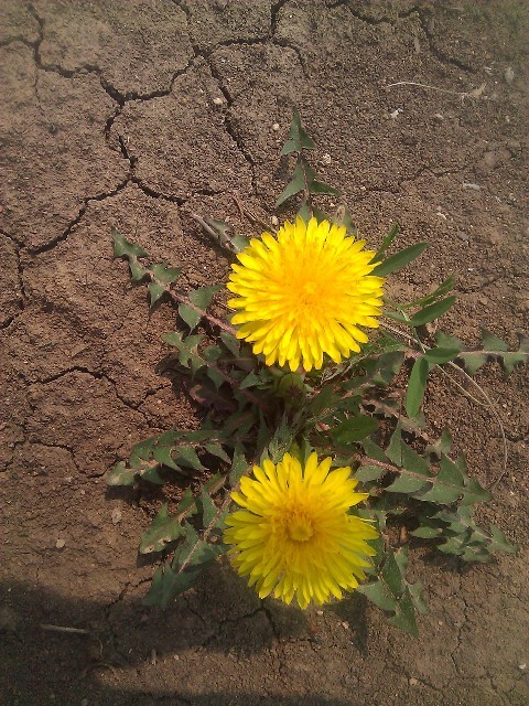 近日出差,郊区野地,偶遇干旱荒地,天气,温度 这么恶劣的环境下 我竟然看到了泛黄的小花.如下图.