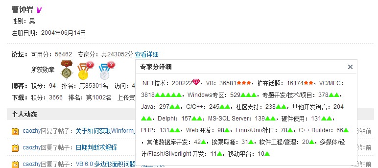 恭喜老曹成为.NET第7位钻石