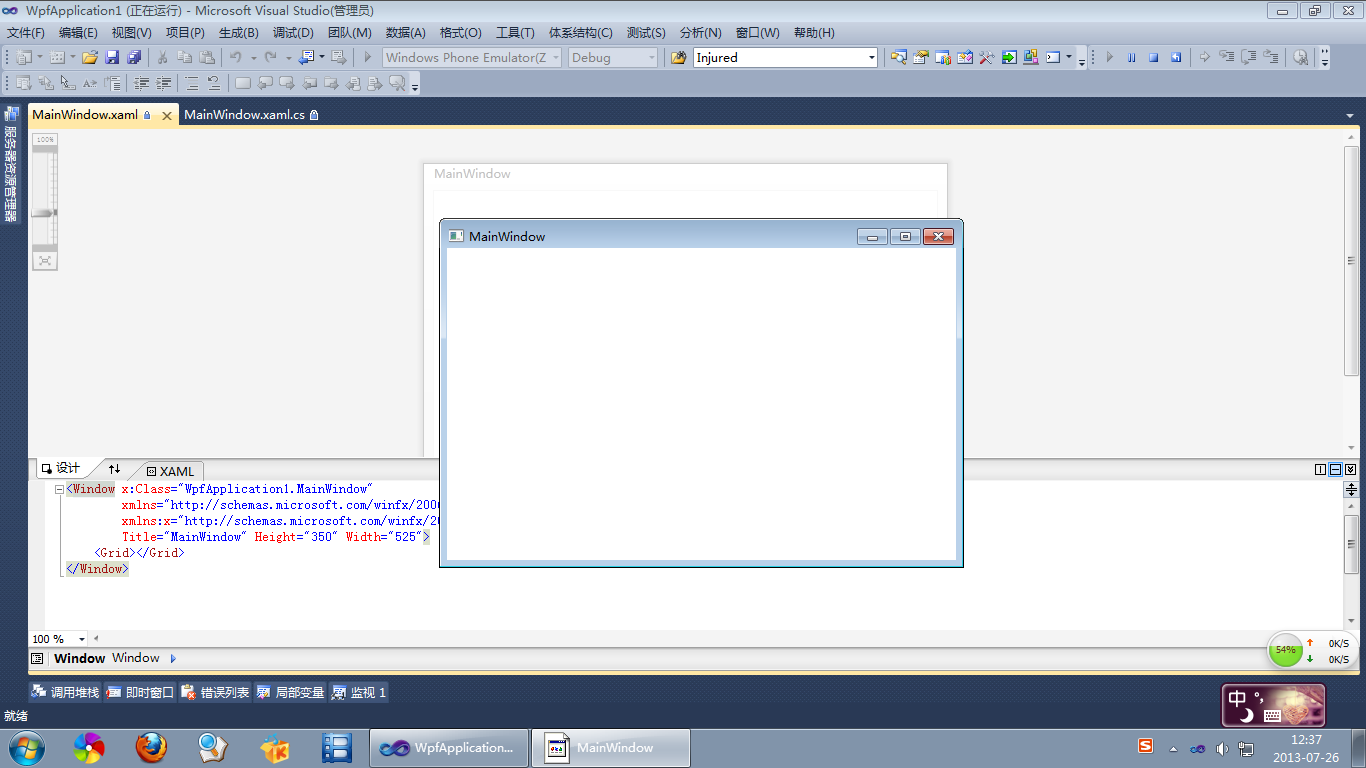 vs2010的WPF应用程序运行后出现情况下面有截图望高手指点.........